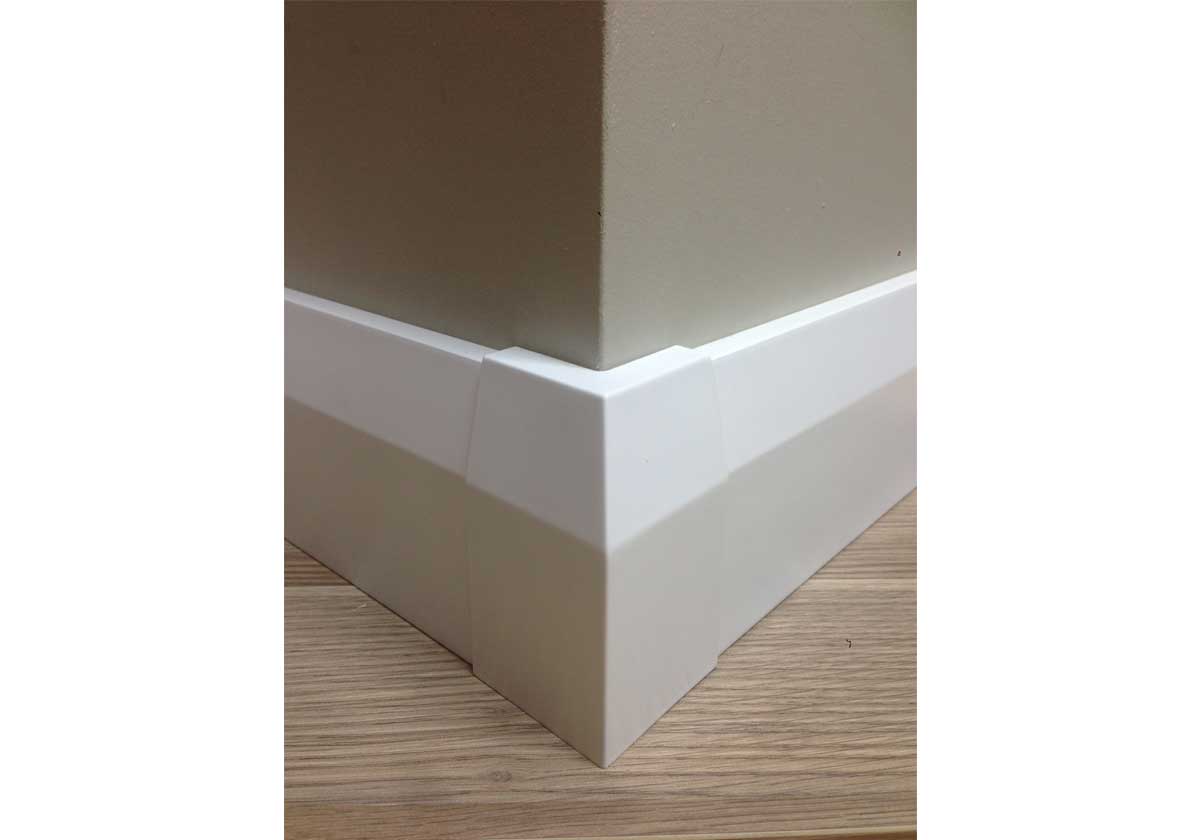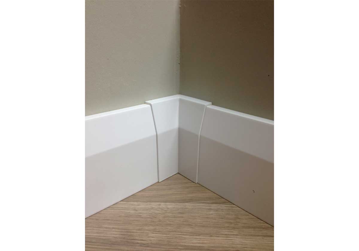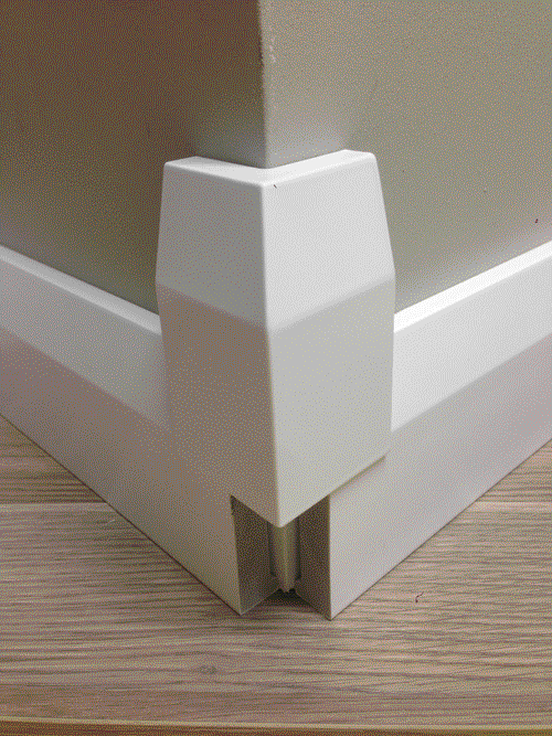The rear tab of the connector slides into the rebate at the rear of the skirting profile to lock the connector to the skirting.